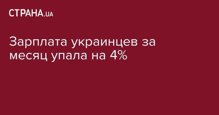 Зарплата украинцев за месяц упала на 4%
