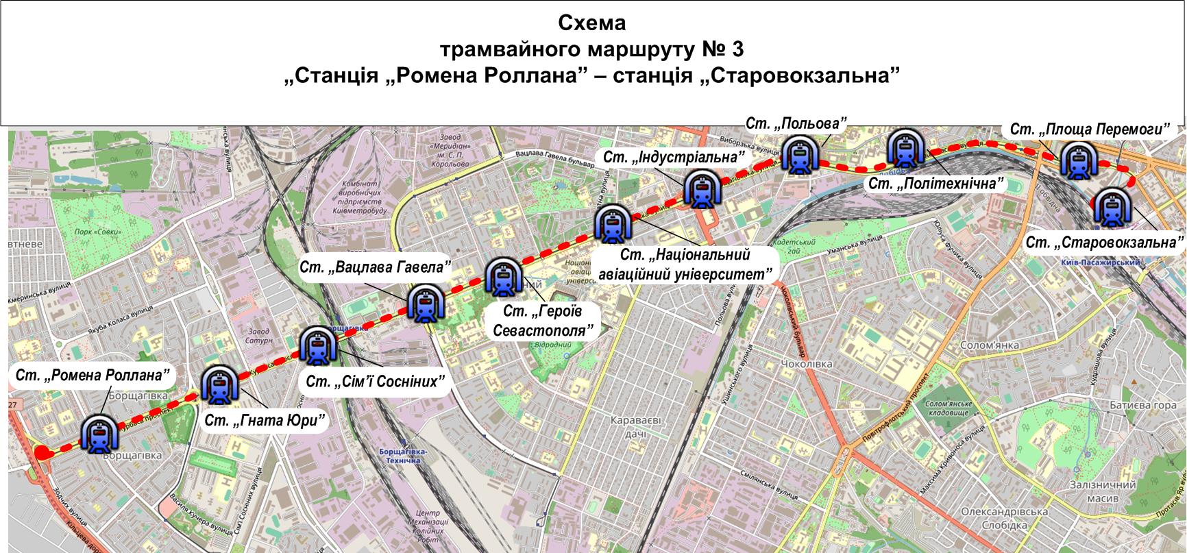 Напомним, что с 28 сентября отменили движение трамваев №2. Вместо них будут курсировать автобусы № 2Т по маршруту: Михайловская Борщаговка - Кольцевая дорога: ул. Симиренко - б-р Кольцова - ул. Литвиненко-Вольгемут - ул. Зодчих - ул. Леся Курбаса, в обратном направлении - ул. Леся Курбаса - ул. Владимира Покотило - б-р Кольцова - ул. Симиренко.