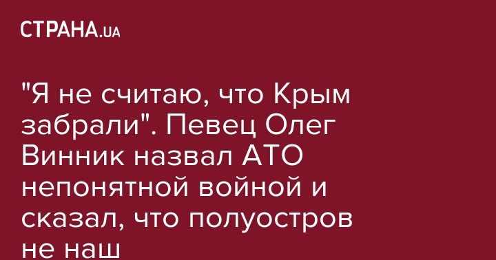 Украинский певец Олег Винник заявил, что во время аннексии Россией Крыма не погиб ни один украинский военный. При этом отказался отвечать на вопрос, чей Крым, сообщает телеканал СТБ.
