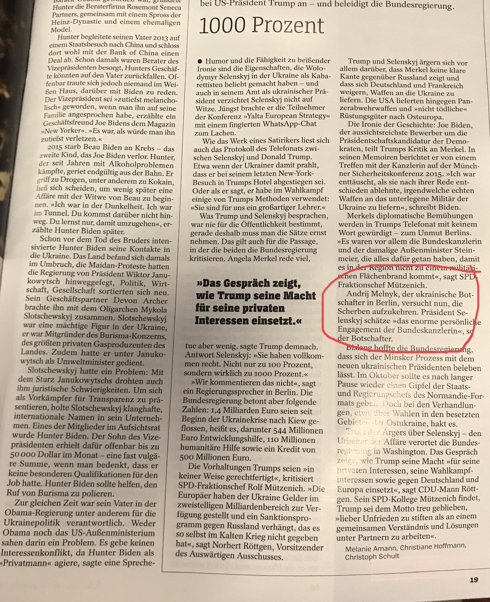 Президент Украины Владимир Зеленский высоко ценит помощь нашей стране канцлера Германии Ангелы Меркель. Об этом заявил посол Украины в Германии Андрей Мельник в комментарии журналу Der Spiegel. Скриншот статьи он опубликовал в Twitter.