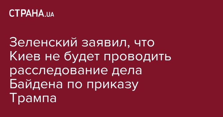 На вопрос, будет ли Киев начинать расследование относительно Джо Байдена и его сына Хантера по просьбе Трампа, Зеленский ответил, что Киев не будет действовать исключительно по приказу других стран.