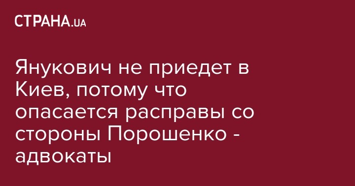 Виктор Янукович не приедет в суд, где его защита обжалует его приговор в деле о госизмене, поскольку визит в Украину связан с риском для жизни экс-президента, ведь он является нежелательным свидетелем для представителей прошлой власти. Такое заявление сделали адвокаты Януковича в беседе с журналистами, передает УНИАН.