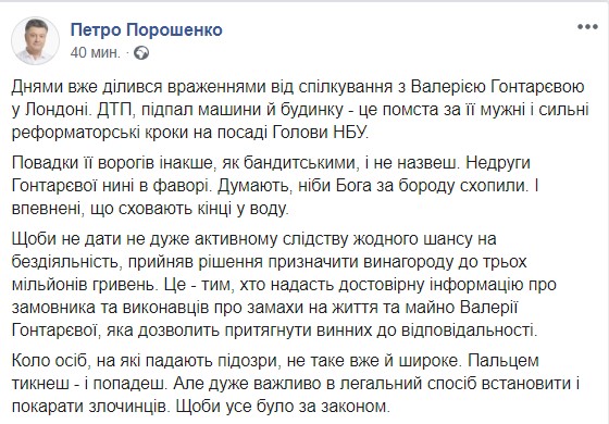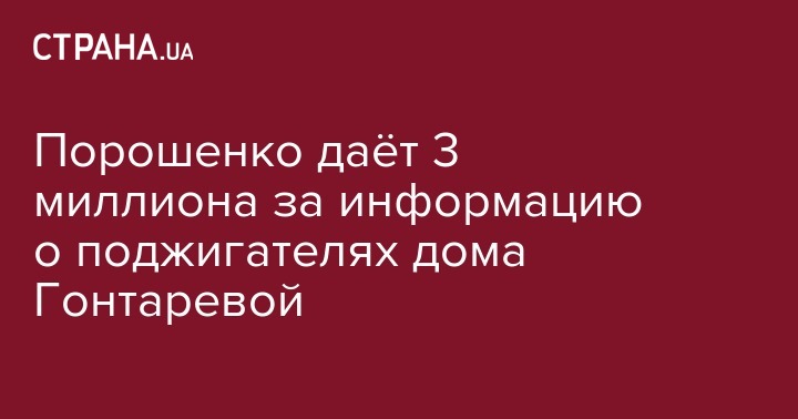 Порошенко даёт 3 миллиона за информацию о поджигателях дома Гонтаревой