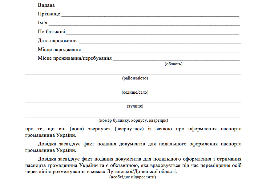 "Въезд в "ЛДНР" граждан Украины, которые выехали оттуда для оформления паспорта осуществляется при предъявлении справки, выданной миграционной службой", - говорится в постановлении Кабмина.