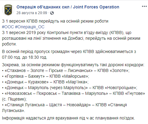 Напомним, что с 1 сентября КПВВ на Донбассе перешли на осенний режим работы.