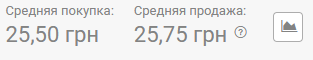 В обменках по состоянию на 08:00 средняя покупка была 25 грн, средняя продажа - 25,30 грн.