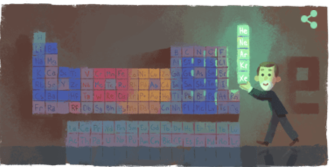 2 октября Google выпустил дудл, посвященный известному шотландскому химику. Уильям Рамзай получил Нобелевскую премию в 1904 году. Он открыл миру такие химические элементы, как ксенон, гелий, криптон, аргон и неон. Сегодня 167 лет со дня его рождения.