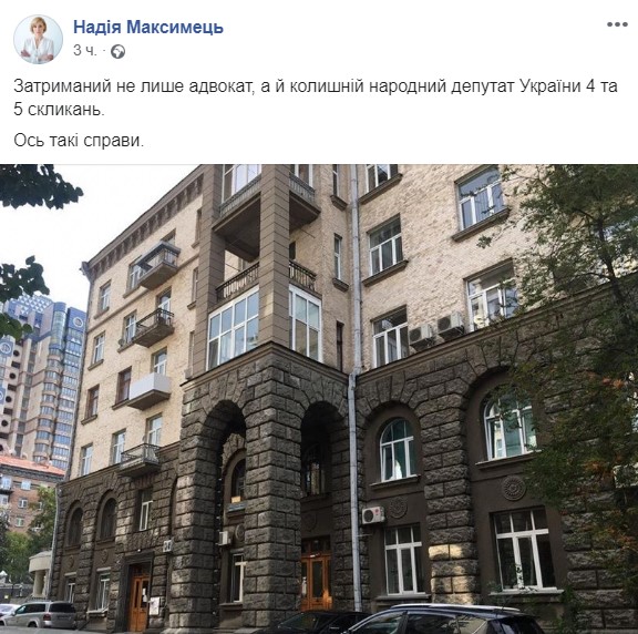 Затем пресс-секретарь прокуратуры Киева Надежда Максимец на своей странице в Фейсбуке написала, что был задержан бывший нардеп.