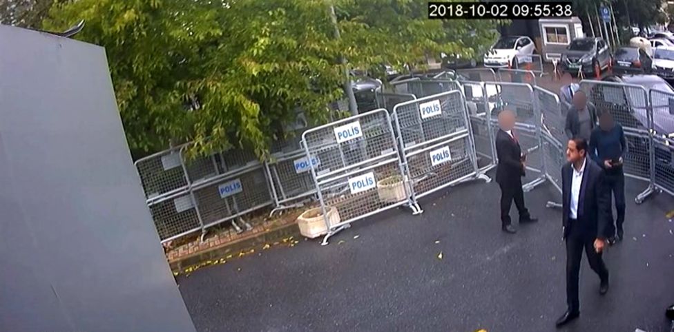 Приблизительно за несколько минут до 10:00 камеры наружного наблюдения зафиксировали, как один из группы прилетевших в Стамбул саудовцев вошел в здание консульства Саудовской Аравии.