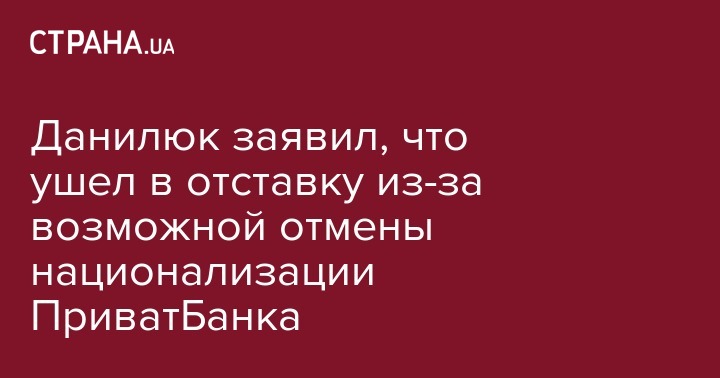 Данилюк заявил, что ушел в отставку из-за возможной отмены национализации ПриватБанка
