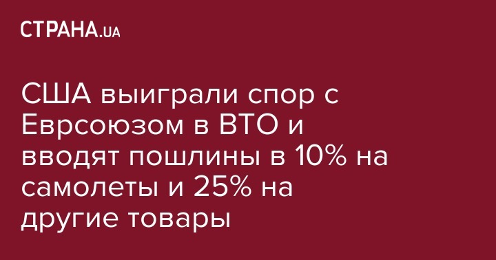 США выиграли спор с Еврсоюзом в ВТО и вводят пошлины в 10% на самолеты и 25% на другие товары