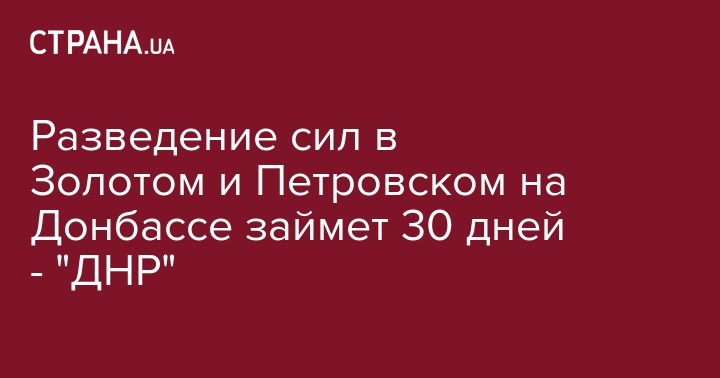 Разведение сил в Золотом и Петровском на Донбассе займет 30 дней - "ДНР"