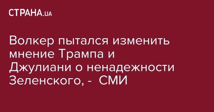 Волкер пытался изменить мнение Трампа и Джулиани о ненадежности Зеленского, - СМИ
