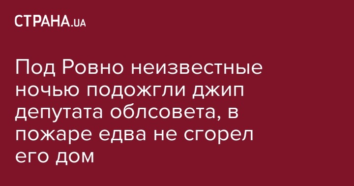 В ночь на пятницу, 4 октября, в Костополе Ровенской области неизвестные подожгли автомобиль депутата облсовета. Об этом сообщается на сайте регинального ГУНП