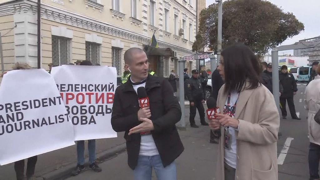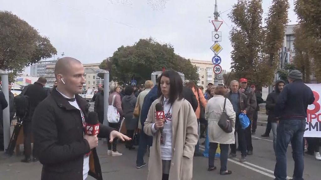 В Житомире в пятницу, 4 октября, проходит акция в поддержку телеканалов "112 Украина", NewsOne и Zik. Ее участники требуют от президента Владимира Зеленского, который в этот день находится в городе, прекратить давление на СМИ.