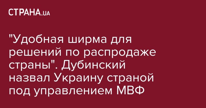 "Удобная ширма для решений по распродаже страны". Дубинский назвал Украину страной под управлением МВФ