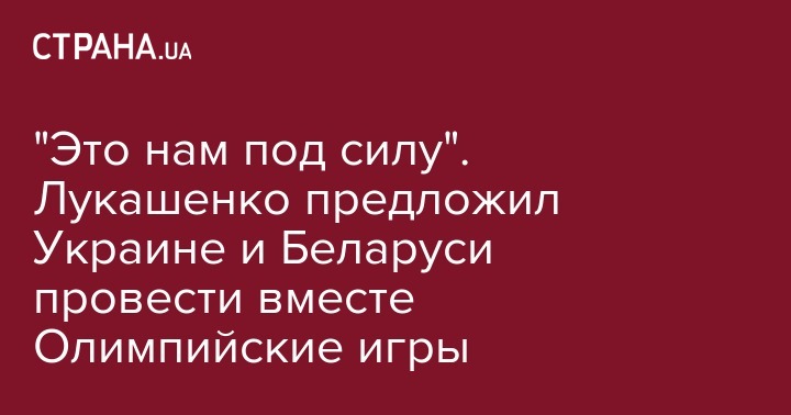 "Это нам под силу". Лукашенко предложил Украине и Беларуси провести вместе Олимпийские игры