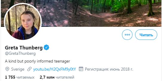 В профиле своего Twitter-аккаунта, где пользователи обычно указывают информацию о себе, она написала: "Добрый, но плохо информированный подросток".