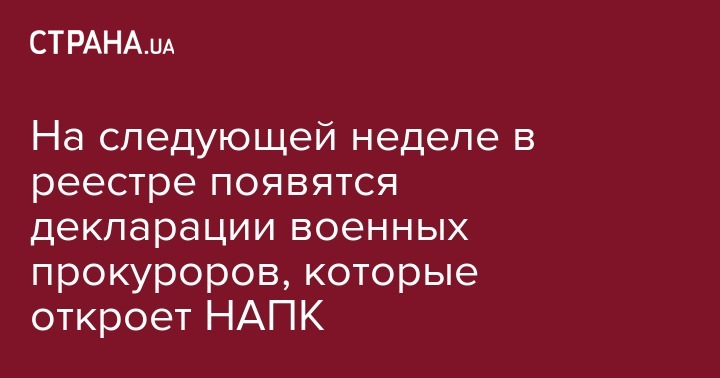 На следующей неделе в реестре появятся декларации военных прокуроров, которые откроет НАПК