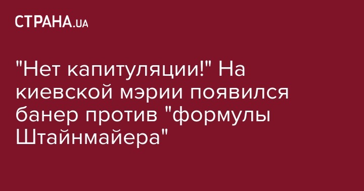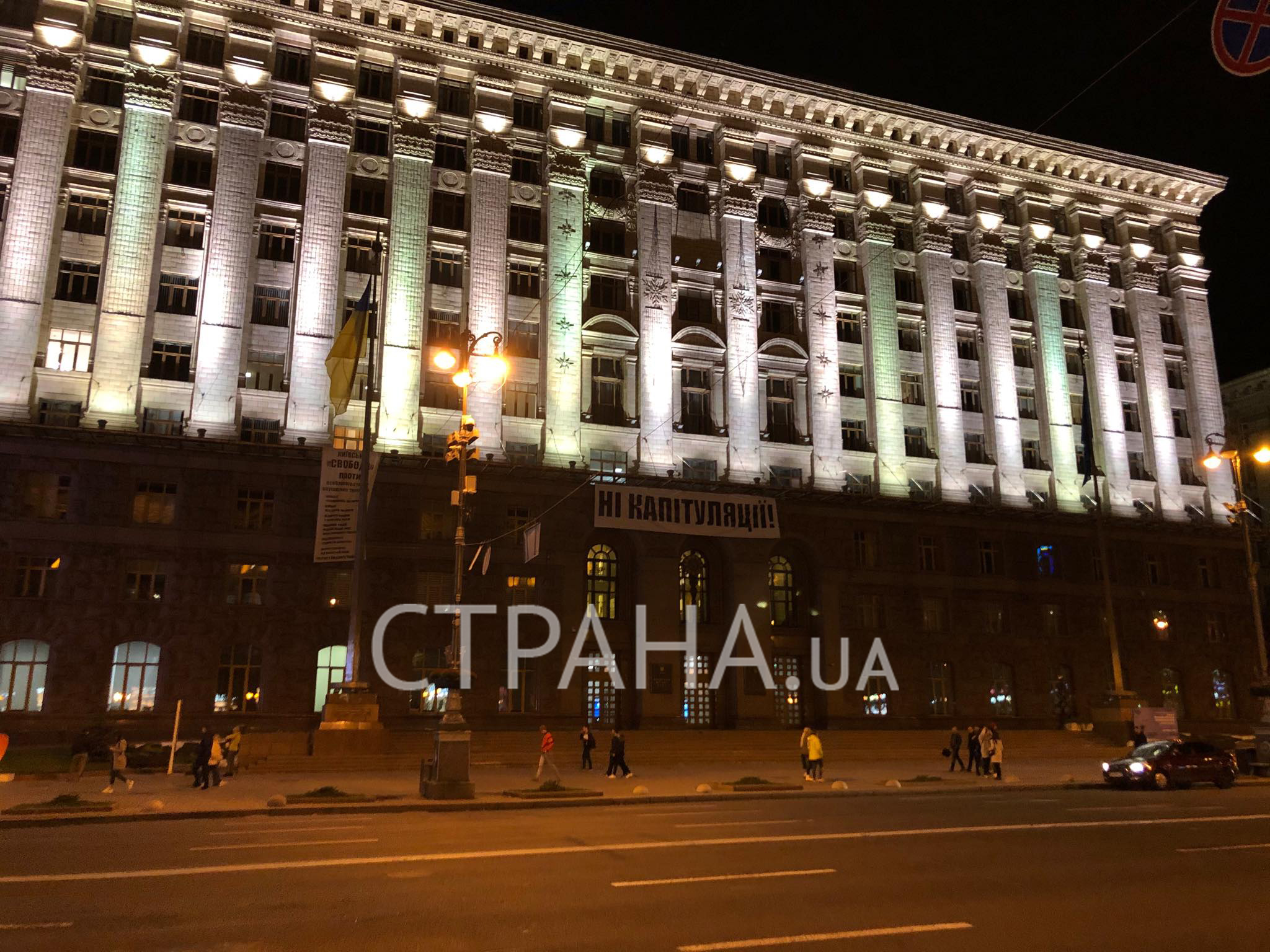 В Киеве на здании Киевской городской государственной администрации появился большой плакат с надписью "Нет капитуляции!".