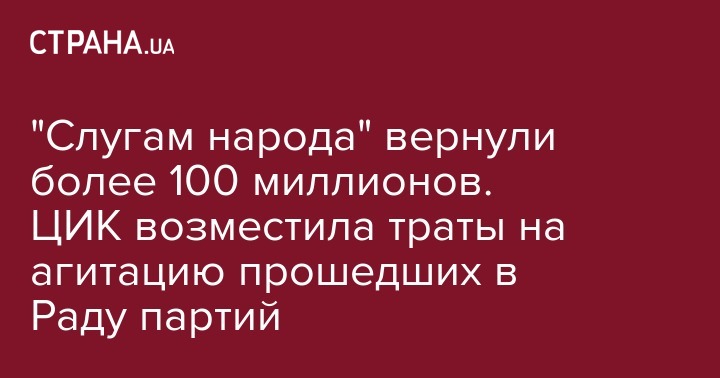 "Слугам народа" вернули более 100 миллионов. ЦИК возместила траты на агитацию прошедших в Раду партий
