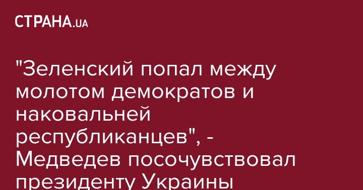 "Зеленский попал между молотом демократов и наковальней республиканцев", - Медведев посочувствовал президенту Украины