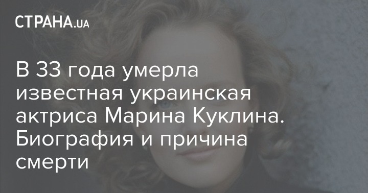 Умерла украинская актриса театра и кино Марина Куклина. Ей было 33 года.