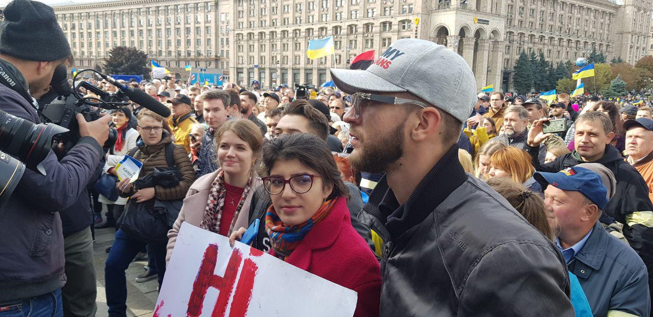 На акциии против формулы Штайнмайера, которая 6 октября проходит в Киеве на Майдане, под самой сценой стоят активисты, которые приходили на акцию в защиту Порошенко во время его допроса в ГБР. Об этом сообщают корреспонденты "Страны".