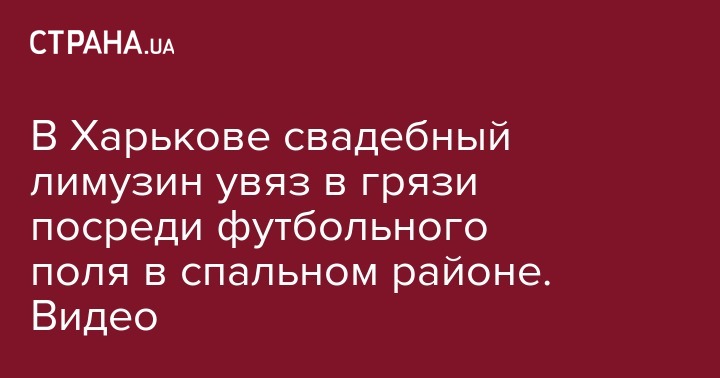 В Харькове белоснежный свадебный лимузин заехал на футбольное поле и не смог вырулить обратно на дорогу из-за грязи. Видео инцидента опубликовало сообщество "Харьков 1654" на Facebook.