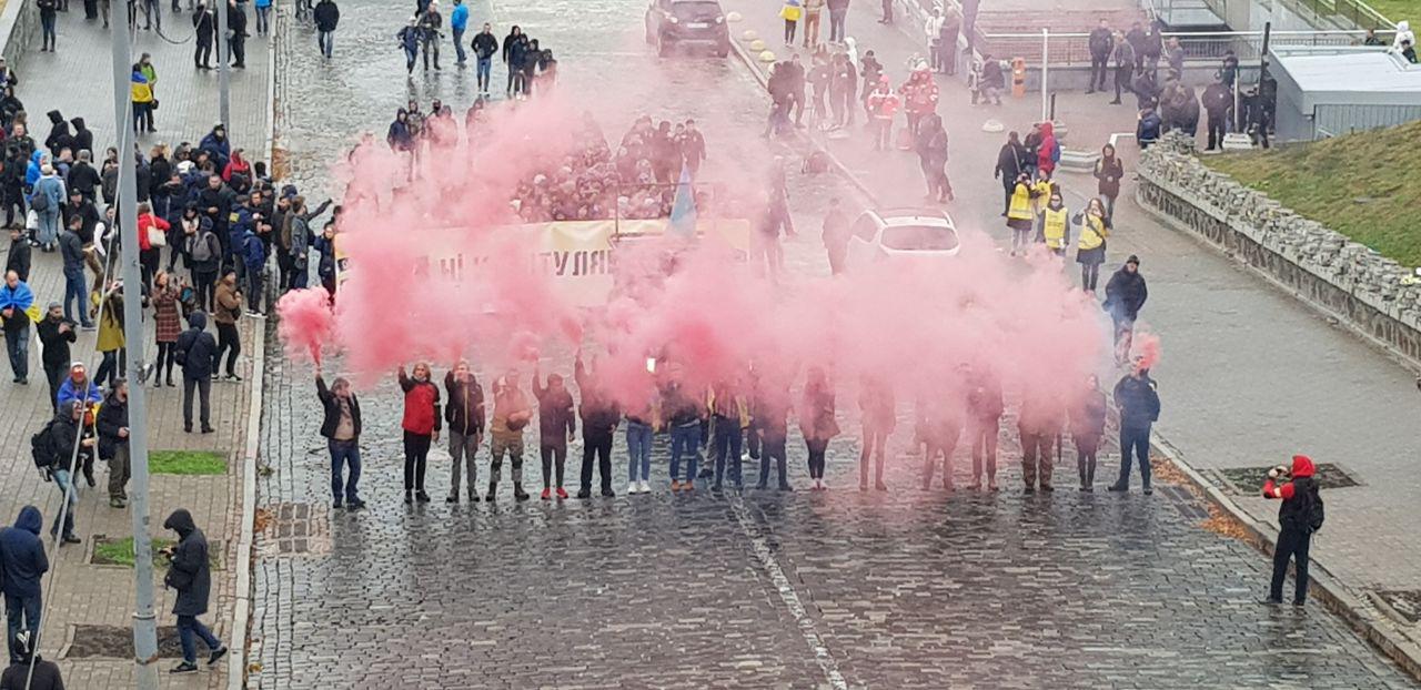 Ранее "Страна" писала, что на акции против формулы Штайнмайера под самой сценой Майдана стоят активисты, которые приходили защищать Порошенко во время его допроса в ГБР.