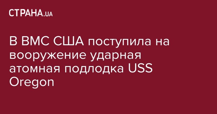 В боевой состав Военно-морских сил США 5 октября была принята ударная атомная подводная лодка (АПЛ) USS Oregon SSN 793, оснащенная 12 крылатыми ракетами Tomahawk. Об этом сообщает "Интерфакс".
