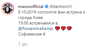 Эпатажная украинская певица Maruv (Анна Корсун) пригласила своих фанатов на встречу в Киеве 8 октября. Об этом она написала на своей странице в Instagram.