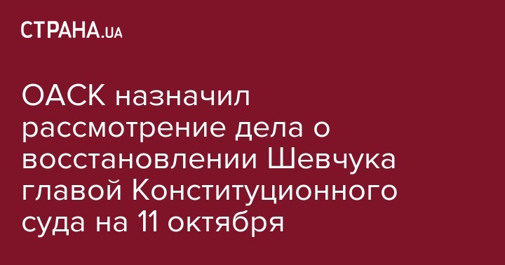 ОАСК назначил рассмотрение дела о восстановлении Шевчука главой Конституционного суда на 11 октября