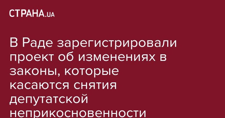 В парламенте зарегистрирован проект изменений в Уголовно-процессуальный кодекс, регламент ВР и закон о статусе народного депутата, касающихся окончательного ограничения депутатской неприкосновенности. Об этом сообщает "112 Украина" со ссылкой на представителей фракции "Слуга народа".