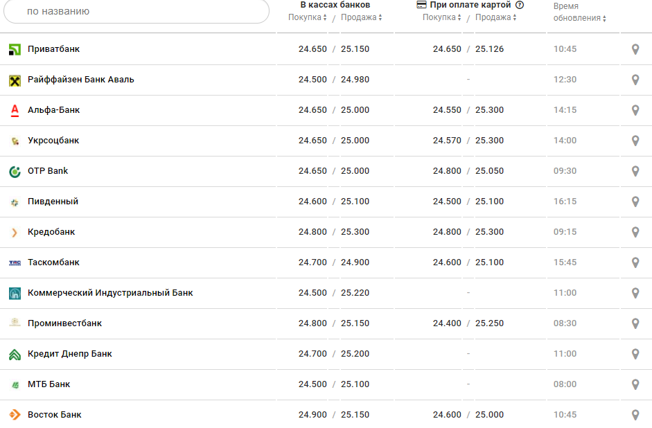 В банках курс доллара с утра был такой: покупка от 24 до 25,10 грн, продают - от 24,90 до 25,60 грн.