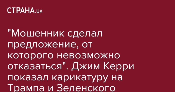 "Мошенник сделал предложение, от которого невозможно отказаться". Джим Керри показал карикатуру на Трампа и Зеленского