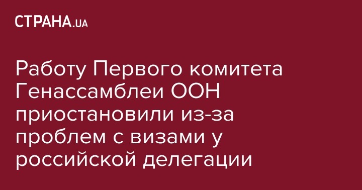 Первый комитет Генассамблеи ООН приостановил работу как минимум до 10.00 вторника, 8 октября, (17:00 по Киеву - Ред.) из-за визовых проблем у российской делегации. Об этом сообщает "Интерфакс" со ссылкой на источник в российской делегации.