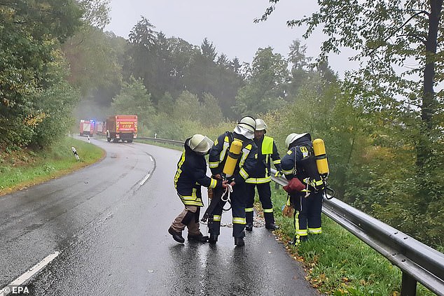Пожарные готовят свое снаряжение возле места крушения истребителя F-16. Фото: dailymail.co.uk