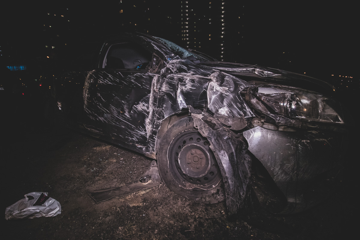 Около 21:30 водитель автомобиля Great Wall ехал по улице Григоренко в сторону улицы Гмыри. На развязке возле станции метро "Позняки" пьяный мужчина не смог справиться с управлением и вылетел на зеленую зону. Машина проехалась несколько десятков метров по газону и снесла забор автомобильной стоянки, за которым находилась насыпь. Great Wall подскочил на насыпи и перевернулся, в результате чего машина оказалась на боку.