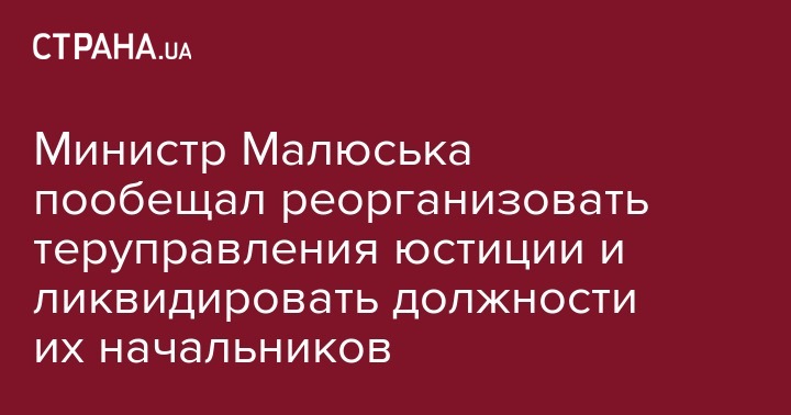 В Украине будут реорганизованы Главные территориальные управления юстиции. Об этом в Facebook сообщил министр юстиции Денис Малюська.