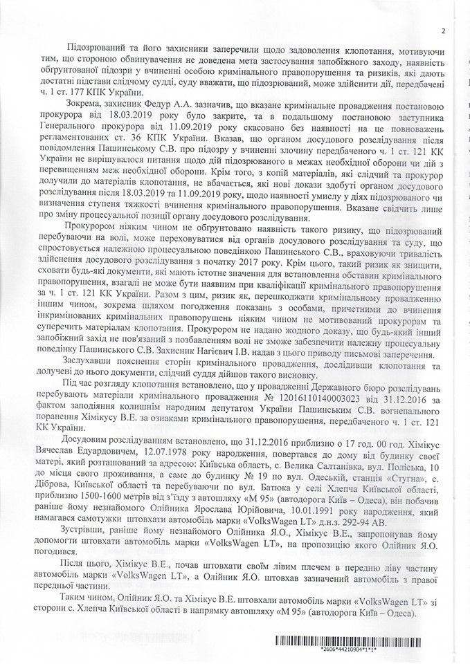 Адвокат экс-нардепа Сергея Пашинского Андрей Федур обнародовал полное решение суда о назначении его подзащитному меры пресечения в виде заключения под стражу.