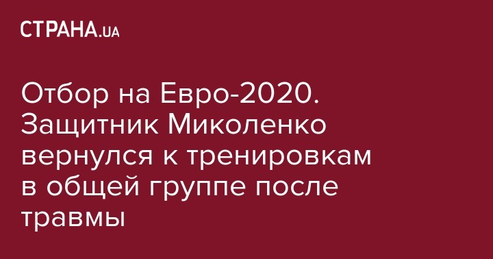 Отбор на Евро-2020. Защитник Миколенко вернулся к тренировкам в общей группе после травмы