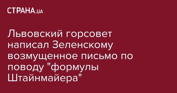 Львовский городской совет проголосовал за то, чтобы направить обращение к президенту Украины Владимиру Зеленскому, Кабинету министров и Верховной Раде относительно "формулы Штайнмайера". Текст послания опубликован на сайте горсовета.