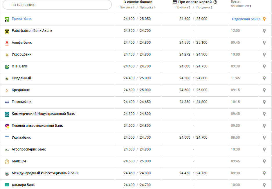 В банках курс доллара с утра был такой: покупка от 24,10 до 24,75 грн, продают - от 24,60 до 25,40 грн.