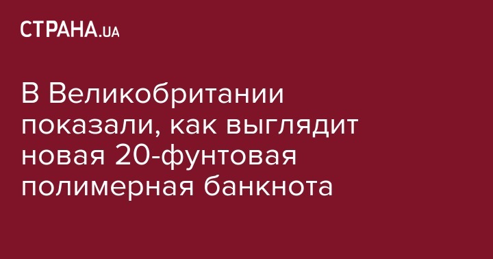 В Великобритании показали, как выглядит новая 20-фунтовая полимерная банкнота
