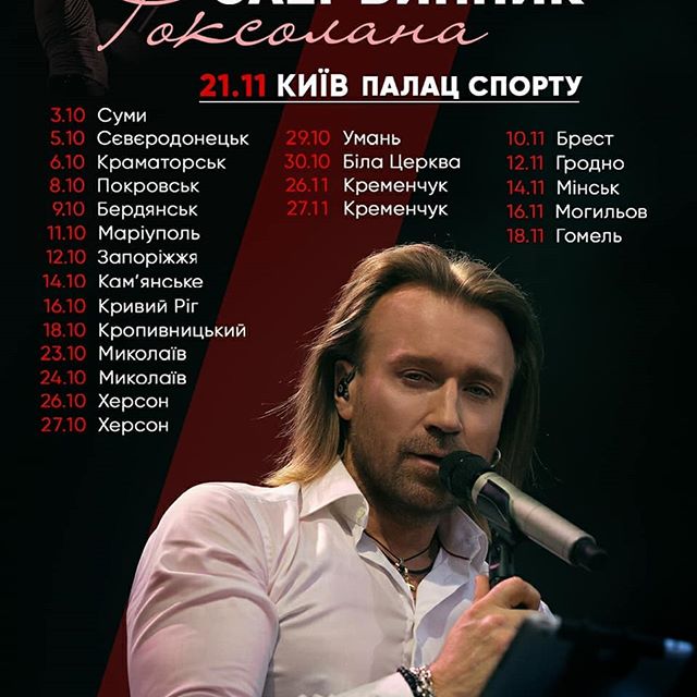 Сейчас у Олега Винника проходит концертный тур "Роксолана" по украинским городам. 8 октября он выступил с концертом в Покровске Донецкой области, после чего поблагодарил поклонников за открытые сердца в посте на своей странице в соцсети. 9 октября он посетил Бердянск в Запорожской области.