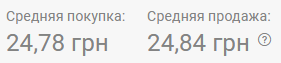 В обменках по состоянию на 08:00 средняя покупка 24,77 грн, средняя продажа - 24,83 грн.