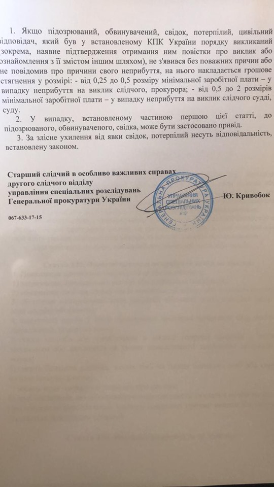 "Сегодня управление ГПУ Горбатюка пригласило и меня тоже для вручения уточненного подозрения по старому забытому делу 2014 года. Напомню, это дело, которое Горбатюк состряпал исключительно для подтверждения оснований для включения Елены Лукаш в санкционный список Советом Европейского Союза в марте 2014 года. Тогда Совет ЕС потребовал от ГПУ подтверждения обоснованности обвинений Елены, как бывшего министра юстиции", - написал Иващенко.
