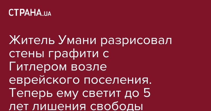 В пятницу, 11 октября, в Умани на одной стен, что находится на территории компактного проживания брацлавских хасидов, появилось графити с изображением Адольфа Гитлера и надпись красной краской на немецком языке. Теперь "художнику" светит до 5 лет лишения свободы. Об этом сообщает пресс-служба полиции Черкасской области.