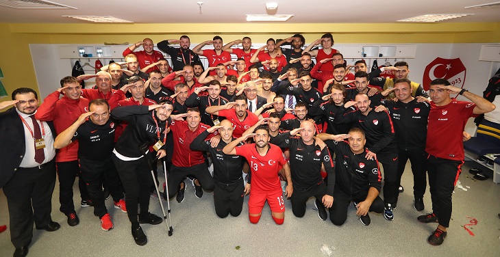 В пятницу, 11 октября, сборная Турции по-военному отпраздновала гол в ворота Албании. Игроки подбежали к трибуне и отдали честь.